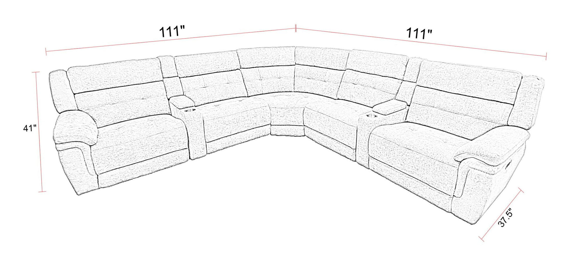 Richland - 6 Piece Modular Power Reclining Sectional With Power Adjustable Headrests - Bristol Gray