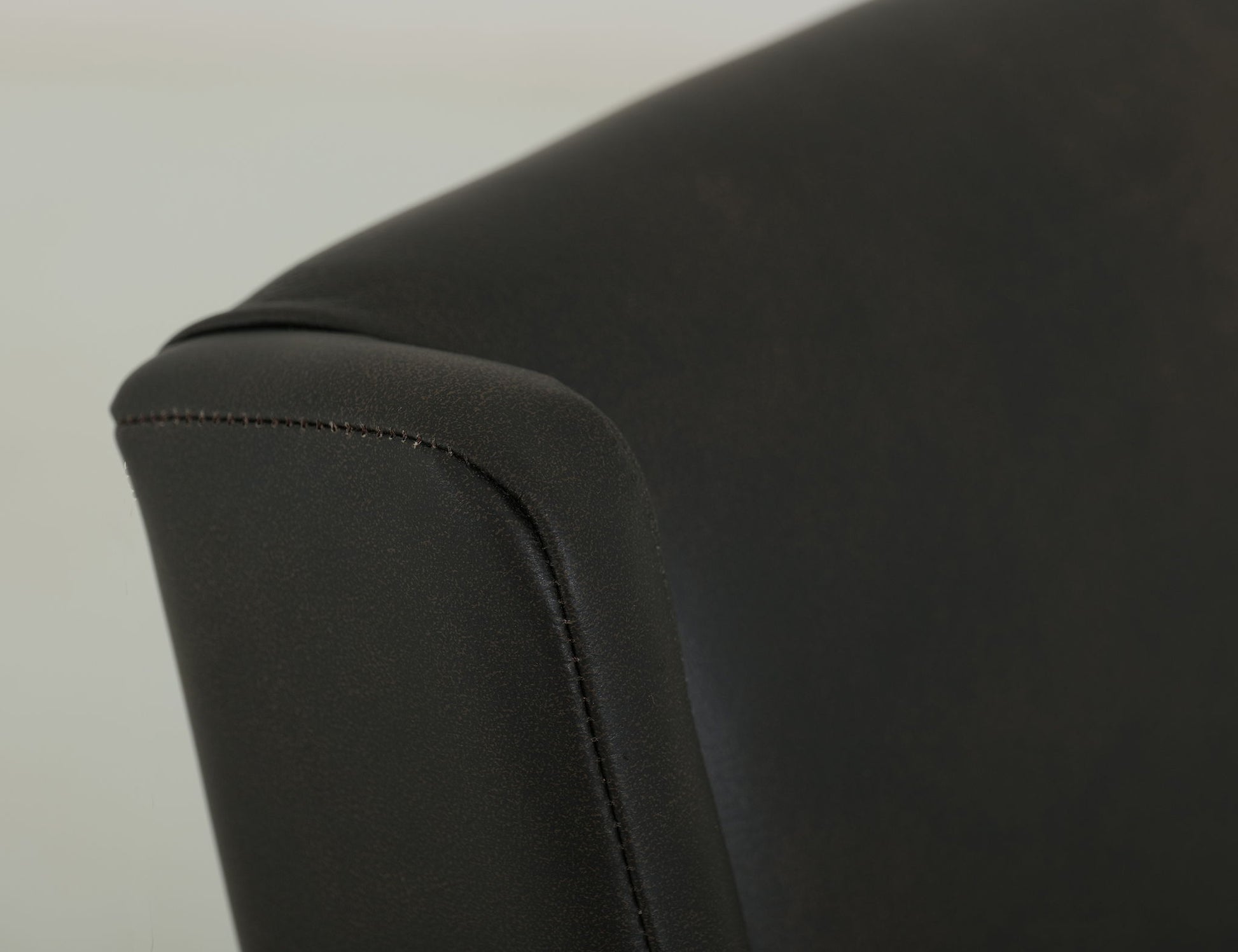 Wooden frame, upholstered chair with a high backrest.. Experience the timeless elegance of the Riverwood Chair. Crafted from Melina and pine wood, this chair features a beautiful translucent lacquer finish in a rich brown shade that highlights the wood's natural beauty and unique grain. The chair features a padded seat and backrest upholstered in faux leather, providing both comfort and style. The Riverwood Chair effortlessly enhances your dining room or complements any space in your home.