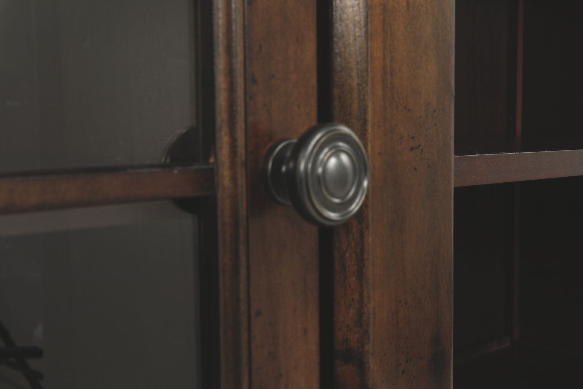 - 2 cabinets with tempered glass doors and 1 adjustable shelf, each