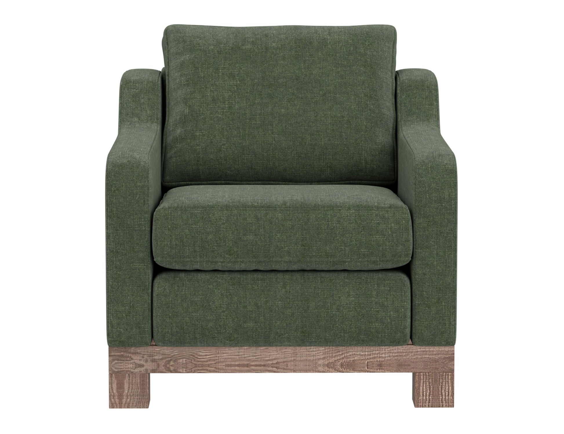 Wooden Frame & Base, Armchair. With its chunky, wide silhouette, the Samba collection infuses your living room with a touch of traditional charm. Supported by a sturdy frame crafted from solid pine wood, it rests gracefully on low-profile block feet with a rich hue.