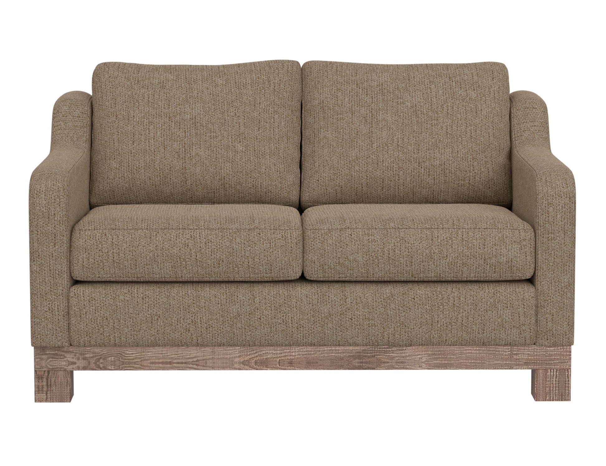 Wooden Frame & Base, Two-Cushion Loveseat. With its chunky, wide silhouette, the Samba collection infuses your living room with a touch of traditional charm. Supported by a sturdy frame crafted from solid pine wood, it rests gracefully on low-profile block feet with a rich brown hue.
