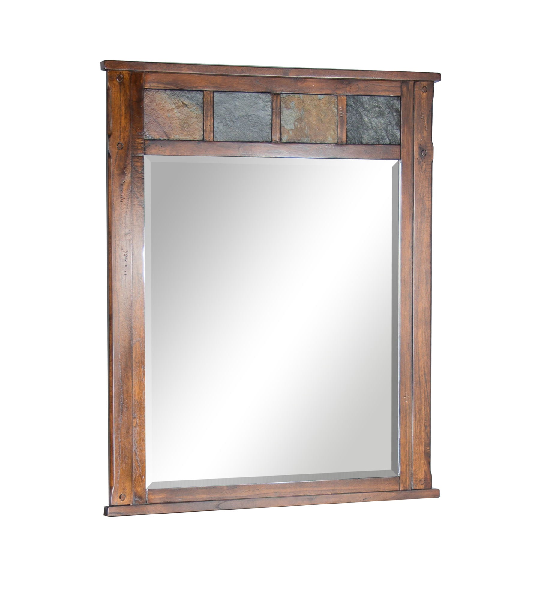 Put the finishing touch on your bedroom ensemble with this charming and versatile mirror. The Santa Fe Collection is crafted of Mindi solids and veneers then finished in a dark chocolate glaze for a rustic look.