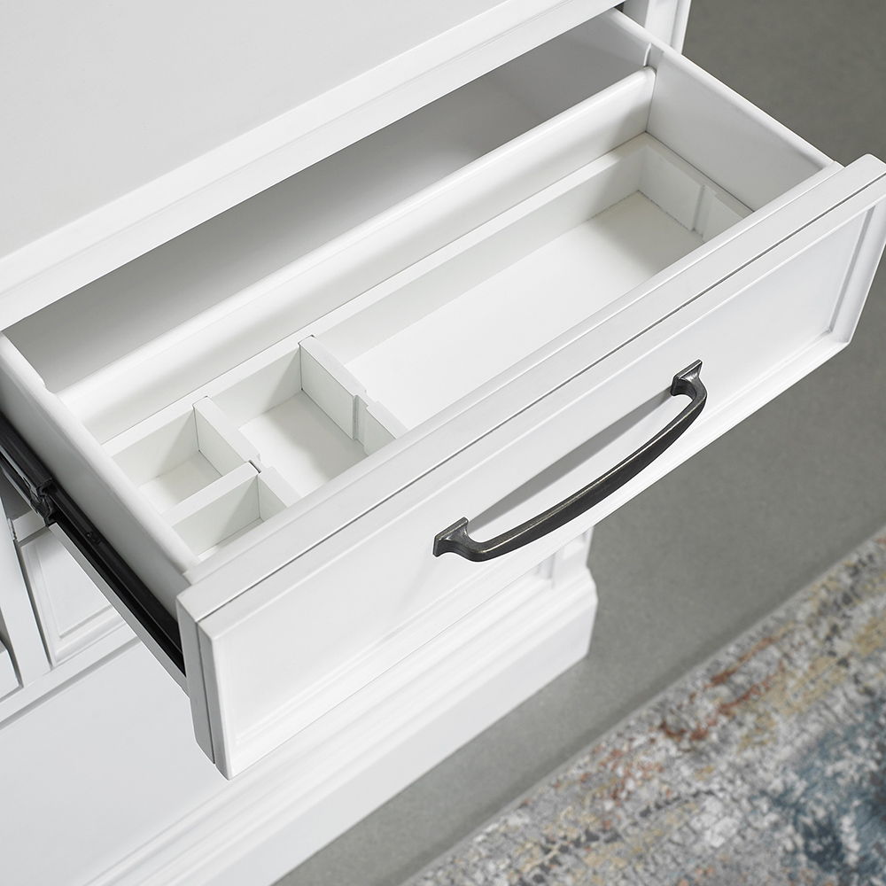 This cabinet in an elegant white finish is accented with custom-designed metal hardware in a timeless Burnished finish. The pull-out top provides a flexible, extended work surface, while the lower pull-out shelf simplifies printer storage and use. With two storage drawers and an adjustable shelf, you can maximize storage options and keep your space organized. The file drawer features metal file hangers and can accommodate letter or legal folders, ensuring that your important documents are always at your fingertips. And, with English dovetail drawer construction, you can be confident in the durability of this cabinet for years to come.