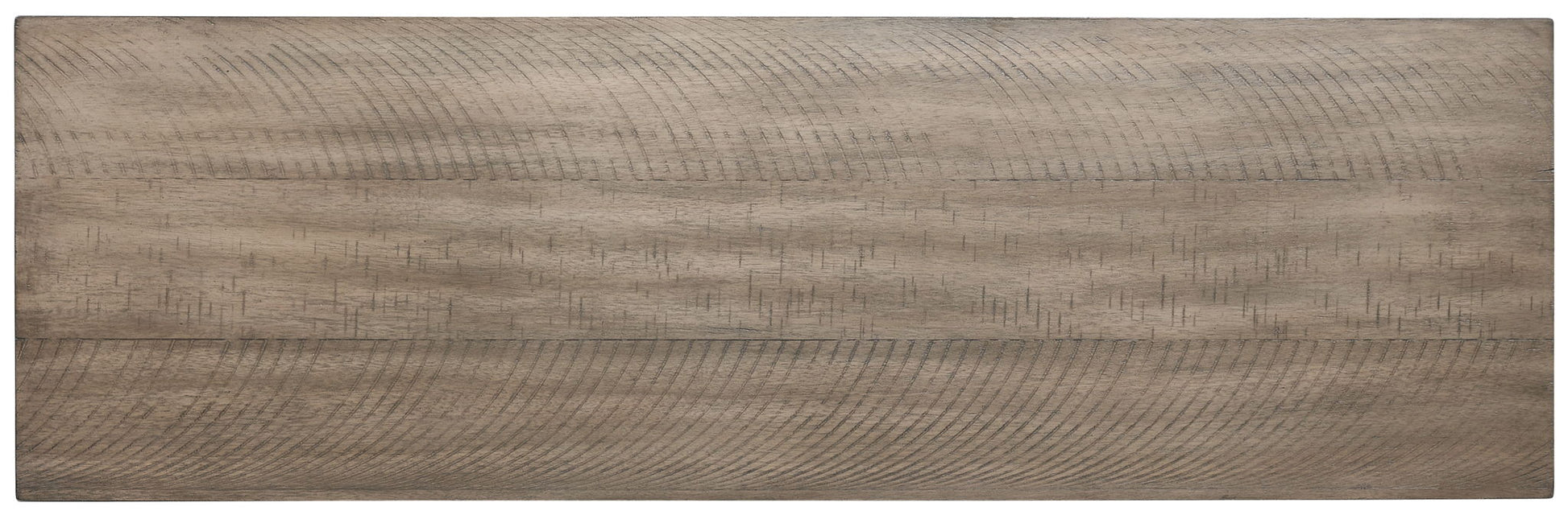 - Distressed grayish white finish