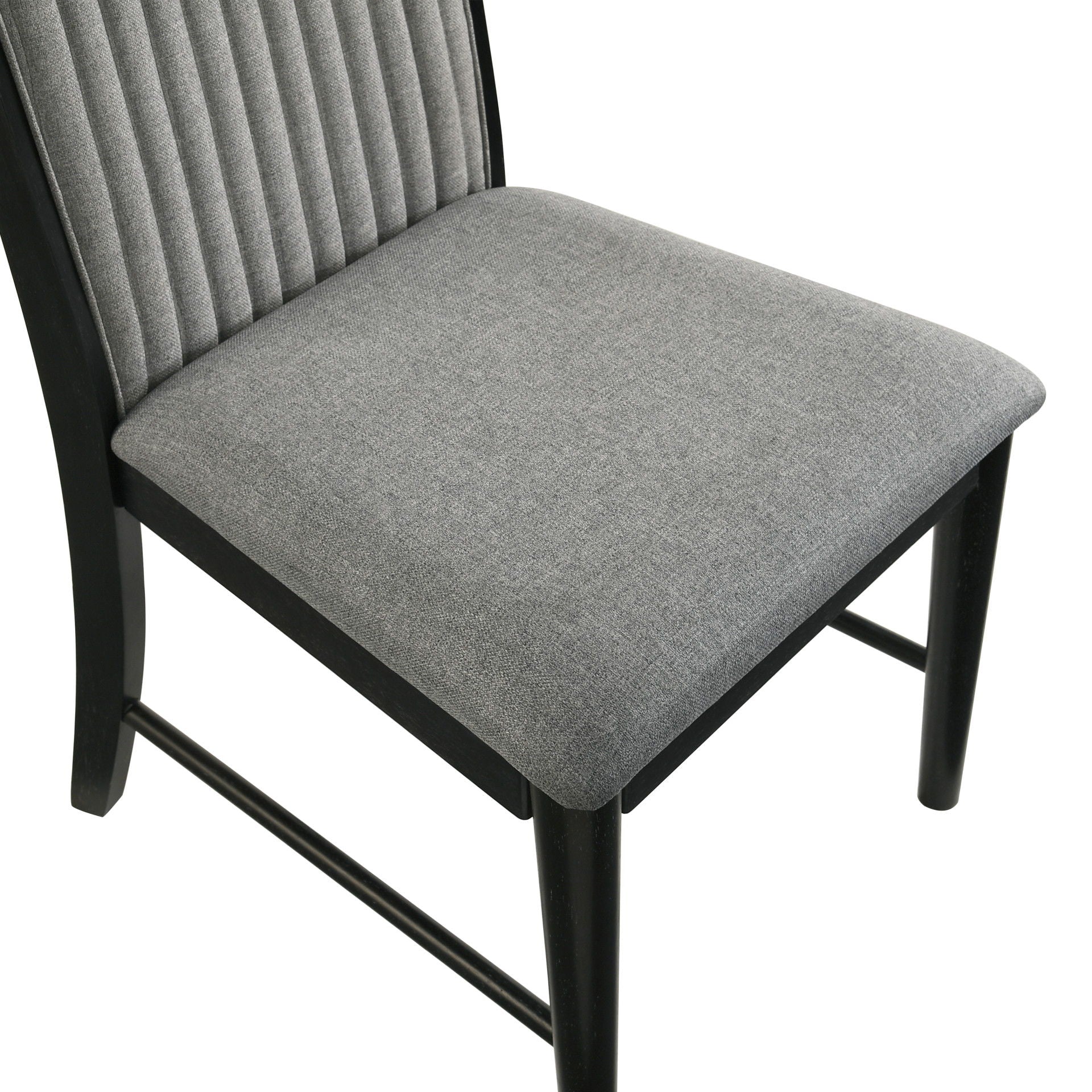 The Skyline Dining Side Chair in Onyx blends modern design with comfort, making it ideal for contemporary dining rooms. Built from solid Rubberwood, engineered woods, and Ash veneers, it’s durable and stylish. The Onyx Black finish with gray glazing enhances the wood grain. Textured gray ribbed polyester upholstery contrasts with the dark wood for a refined touch. Resilient foam cushions provide soft yet supportive seating. Sold in pairs, these chairs offer durability, comfort, and timeless appeal.