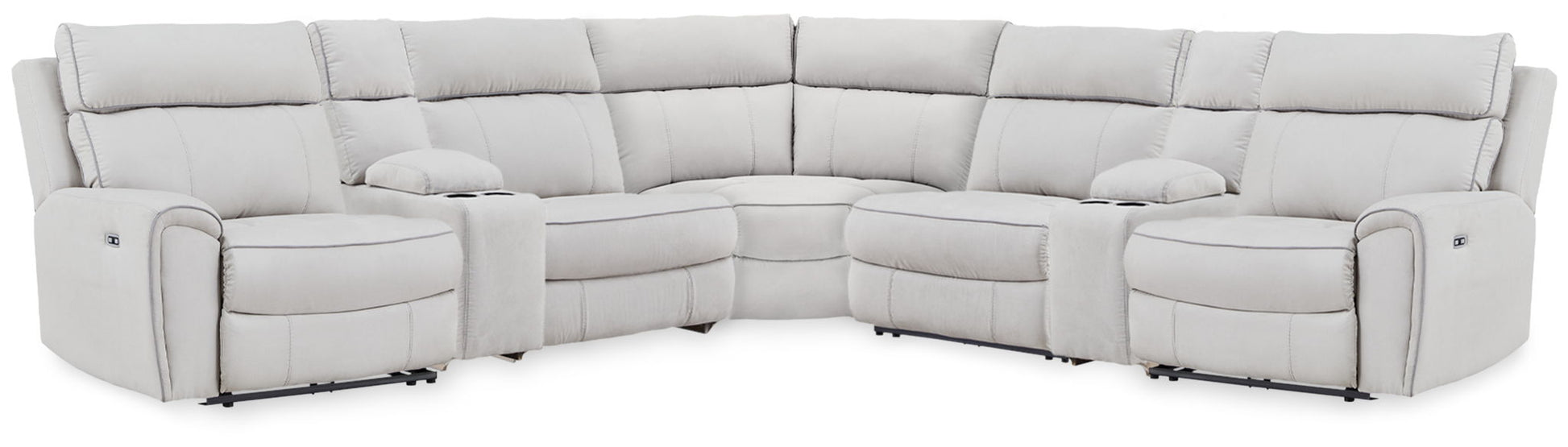 Social Pointe - 7-Piece Power Reclining Sectional With Storage Consoles - Pearl / Ash