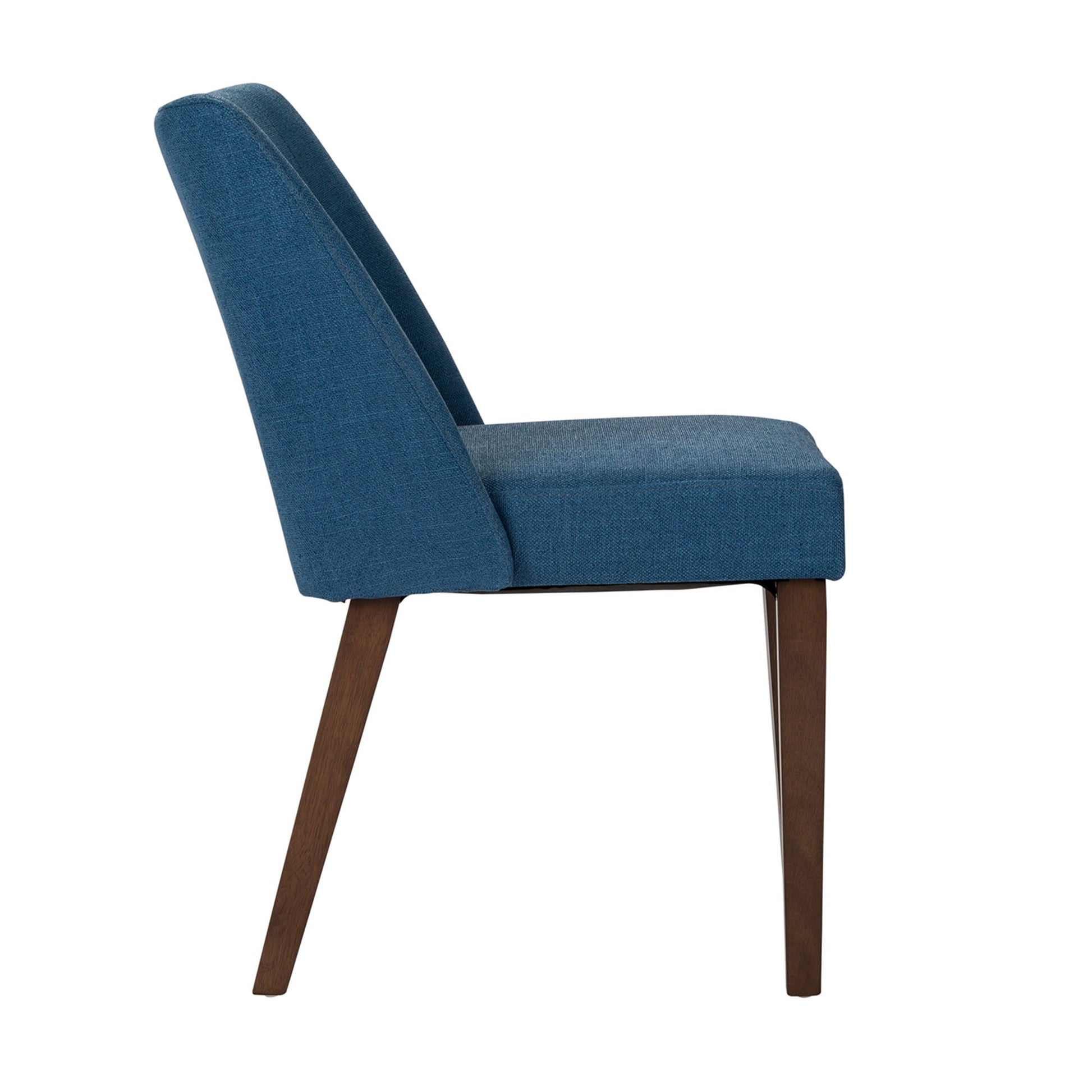 Do not sacrifice style while saving space with the Space Savers five-piece rectangular table set. Crafted of rubberwood solids and walnut veneers, this set features a satin walnut finish and consists of the rectangular leg table and four Nido side chairs upholstered in a blue jean denim. The leg table has a fixed top that is anchored by tapered legs with a softly rounded edge. The Space Savers collection allows for contemporary, trendy looks in today’s casual finishes.