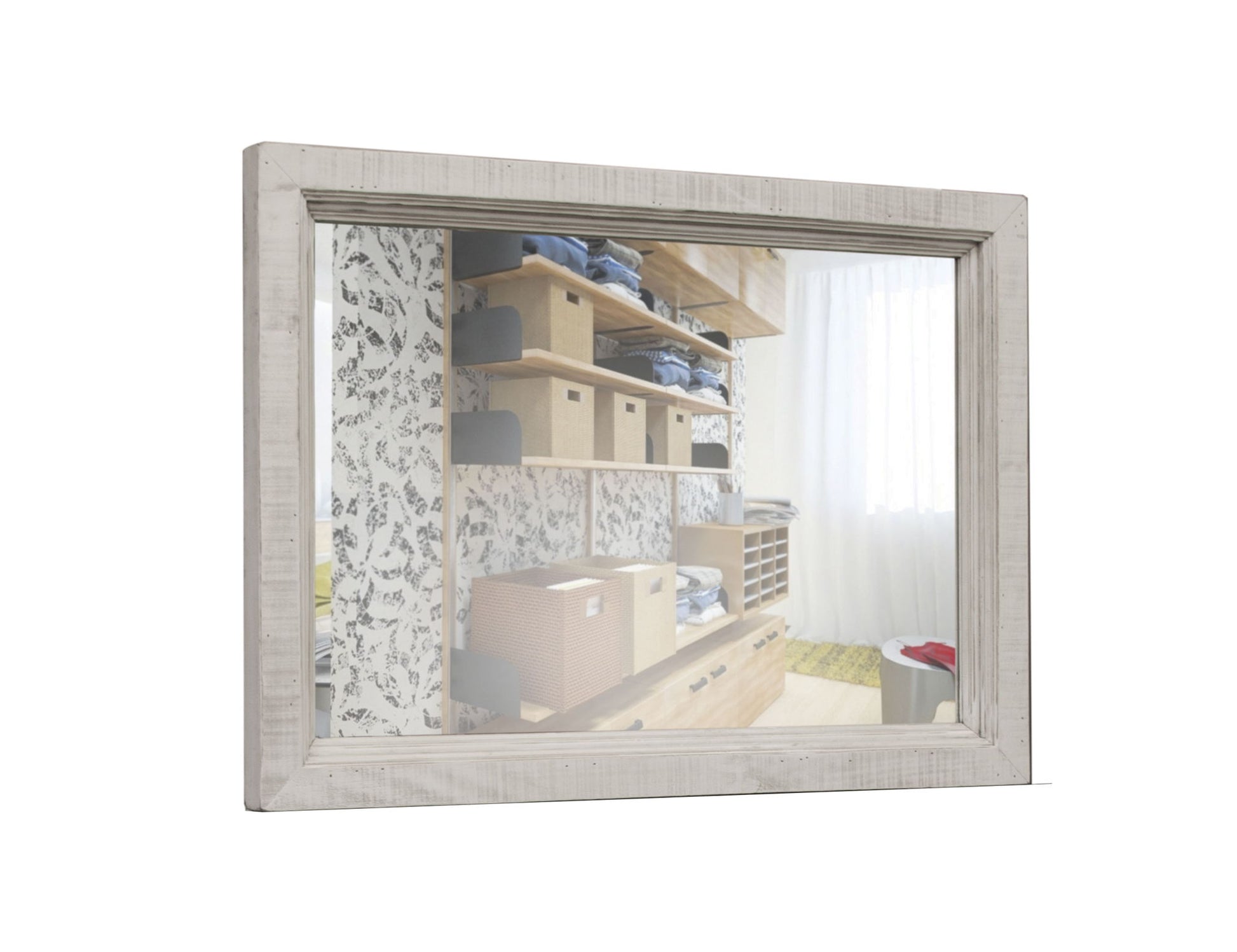 Bedroom Mirror. Exuding farmhouse chic with just the right touch of old-world charm, the Stone Collection is meticulously crafted from solid pine wood. The wood is lightly distressed, showcasing a white finish and complemented by weathered tops.