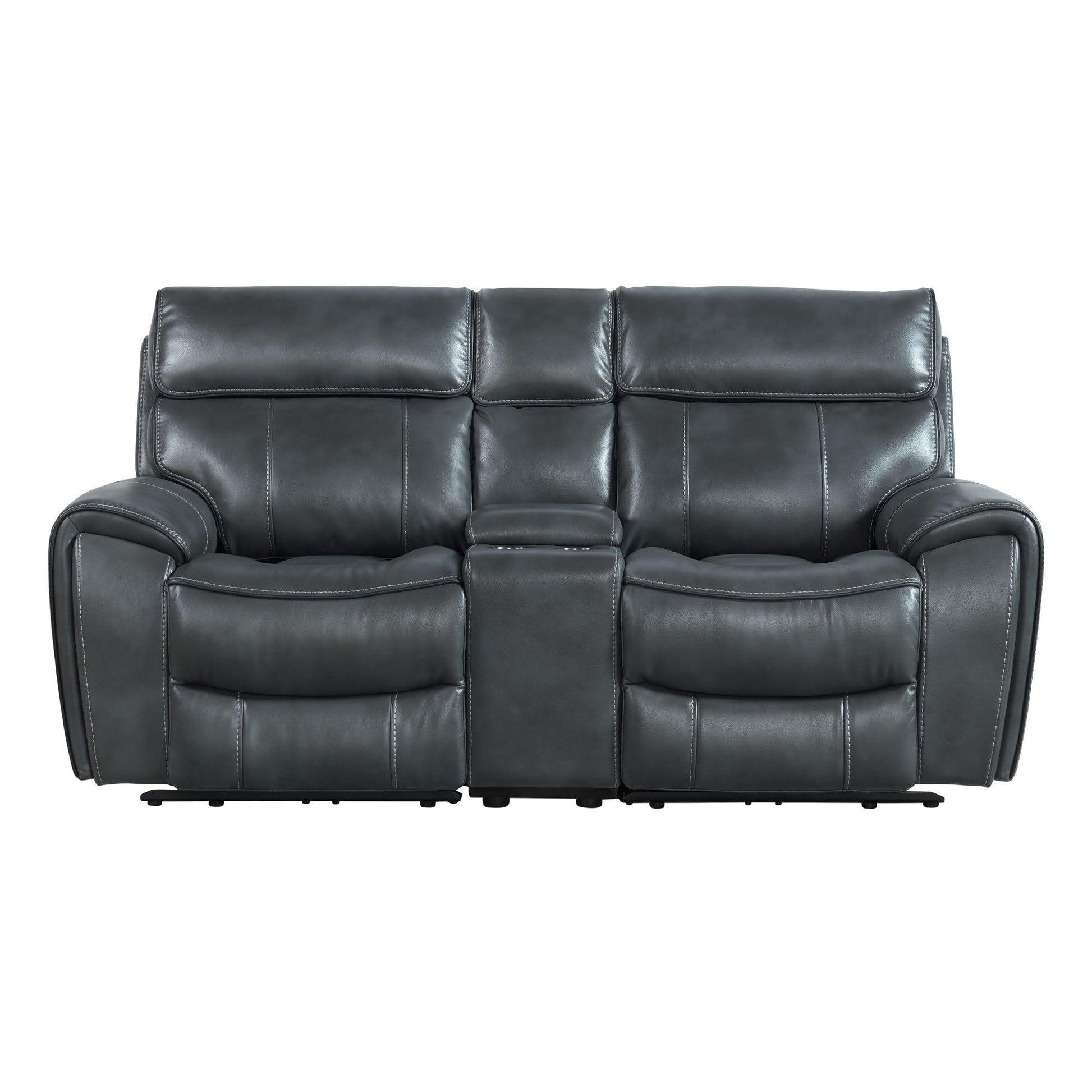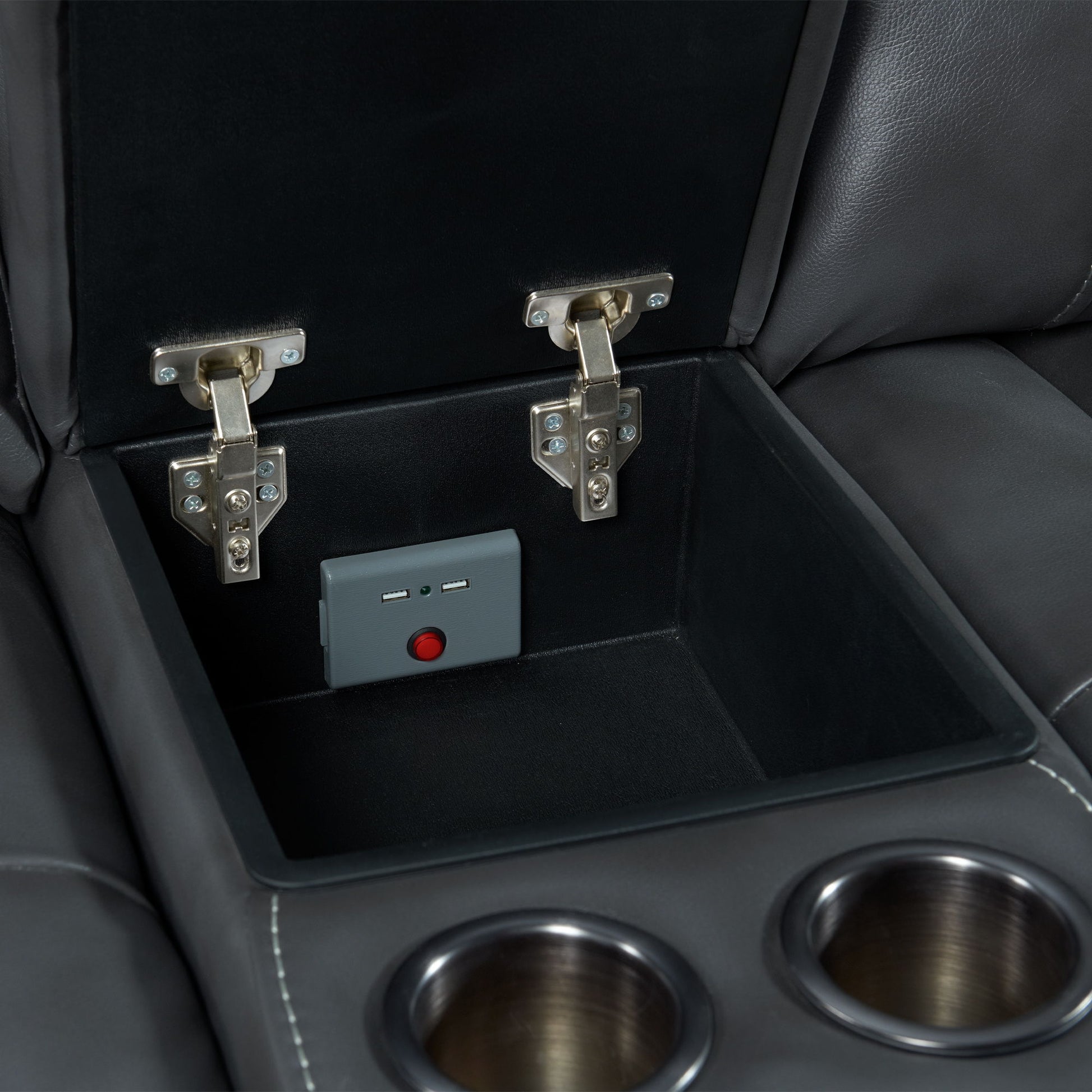 This group feature sloped padded arm design with a split back that is accented by a contrast welt. Power Head rest and power recline along with bucket chaise seating makes this style dream worthy in seating comfort. Features a breathable Polyurethane coving that gives the look and feel of leather. Construction is engineered plywood frame with padding completely on outside arms and back and metal seat box construction.