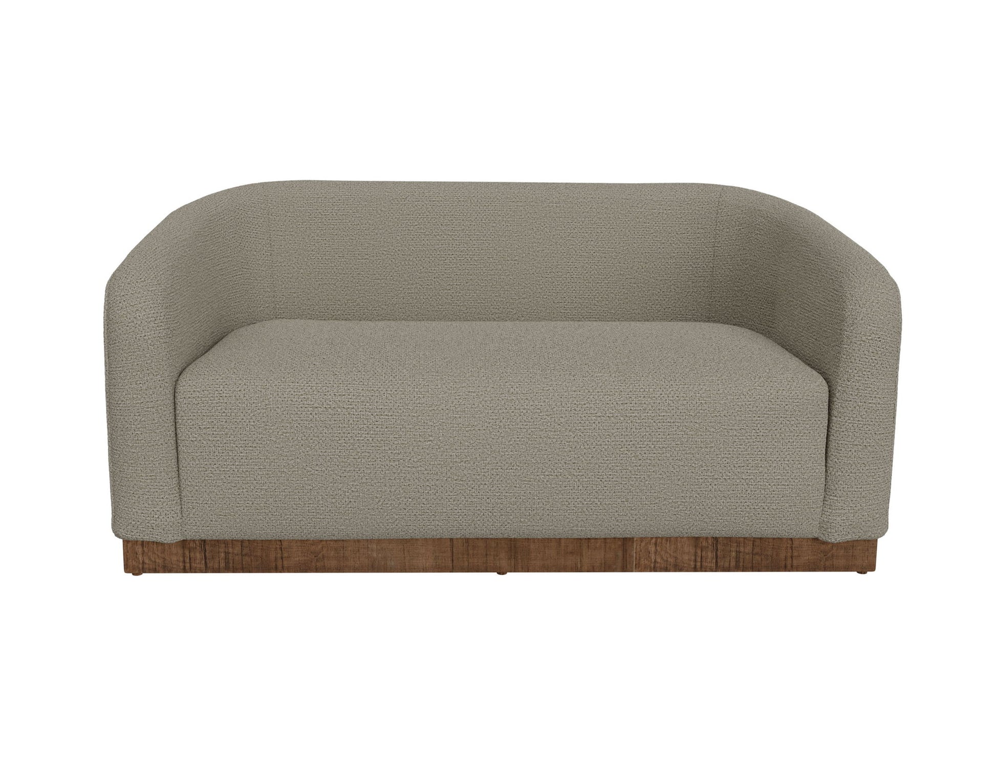 Wooden Frame & Base, Loveseat. The Suomi Collection, distinguished by its flowing form, embodies the Zen-inspired Japandi style. This loveseat minimalist design is harmoniously complemented by its wooden base crafted from pine wood, with its wraparound back seamlessly merging into rounded arms, creating a cradle for an exceptionally thick and comfortable cushioned seat