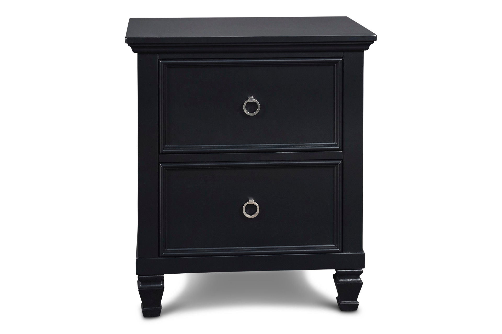The Tamarack 2 Drawer Wood Nightstand combines durability with elegance. Built with solid poplar, basswood veneers, and eco-friendly manufactured wood, this nightstand ensures strength and long-lasting durability. Its versatile transitional design seamlessly blends contemporary clean lines with classic paneled detailing, creating a perfect harmony of modern and traditional aesthetics. The sleek black finish adds a touch of sophistication and modernity, enhancing the overall aesthetic and complementing any decor style. Quality drawer construction ensures smooth operation with side-mounted glides and the durability of English dovetail joinery on both the front and back, guaranteeing long-lasting use. Fully finished drawers provide snag-free storage, while the felt-lined top drawer protects your delicates. This nightstand is an excellent addition to any bedroom, offering both style and functionality.