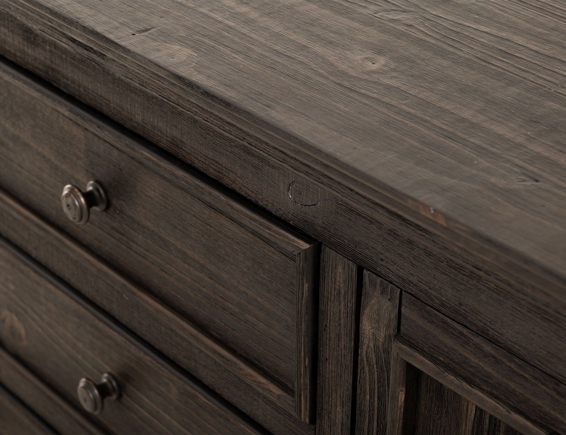 6 Drawer 2 Doors Dresser. Drawing inspiration from transitional design, the Terra collection embodies the effortless elegance of its clean, sturdy shapes and the charming rustic grain of solid pine wood. With a tasteful deep finish, this collection represents a harmonious fusion of modern and traditional elements, making it a timeless addition to your home.