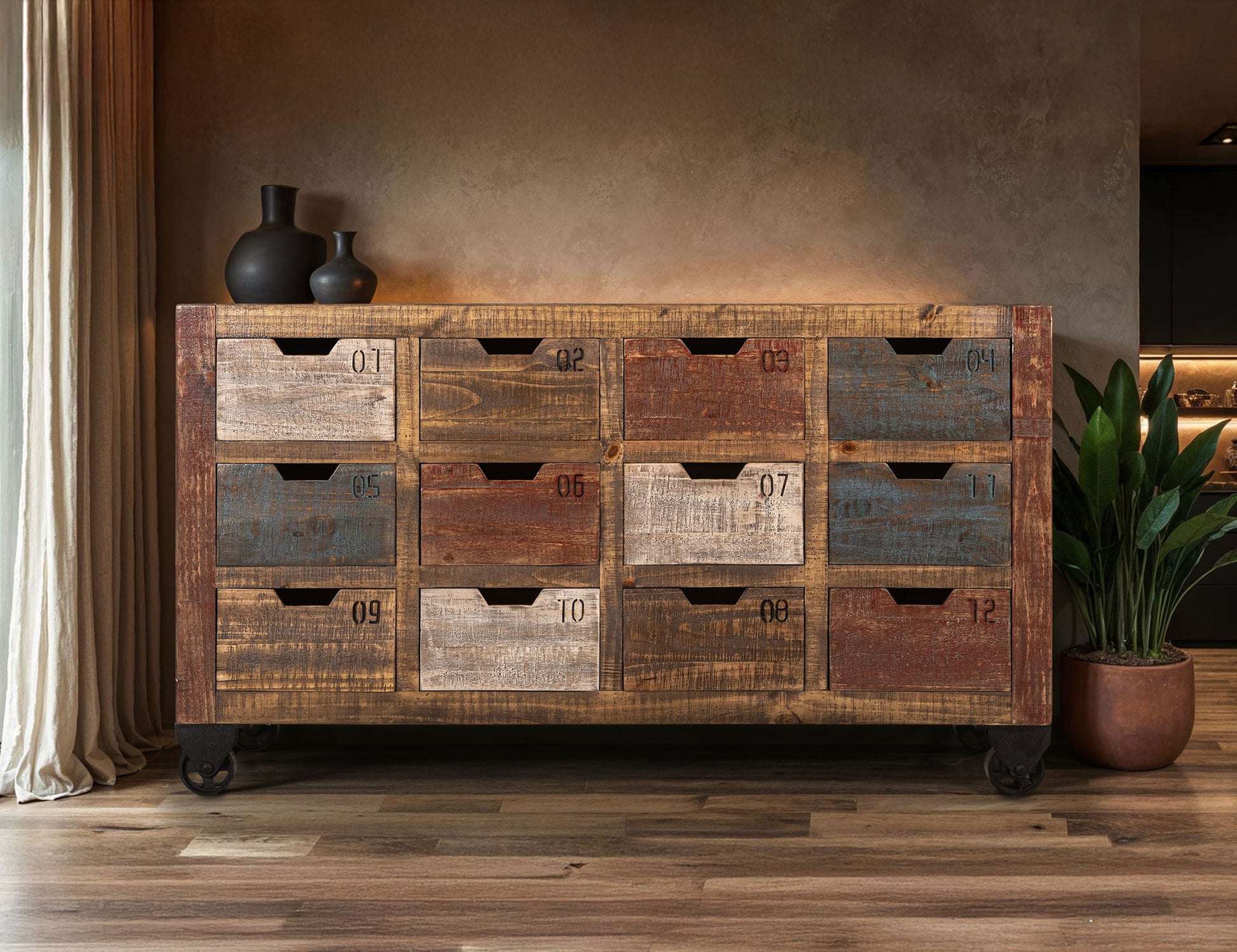 12 Numbered Drawer Console. Introducing the Urban collection, where transitional design meets elegance. Crafted from solid mango and pine wood, each piece is meticulously finished with a beautiful multi-step lacquer, accentuated by delicate golden powder dry brush detailing.