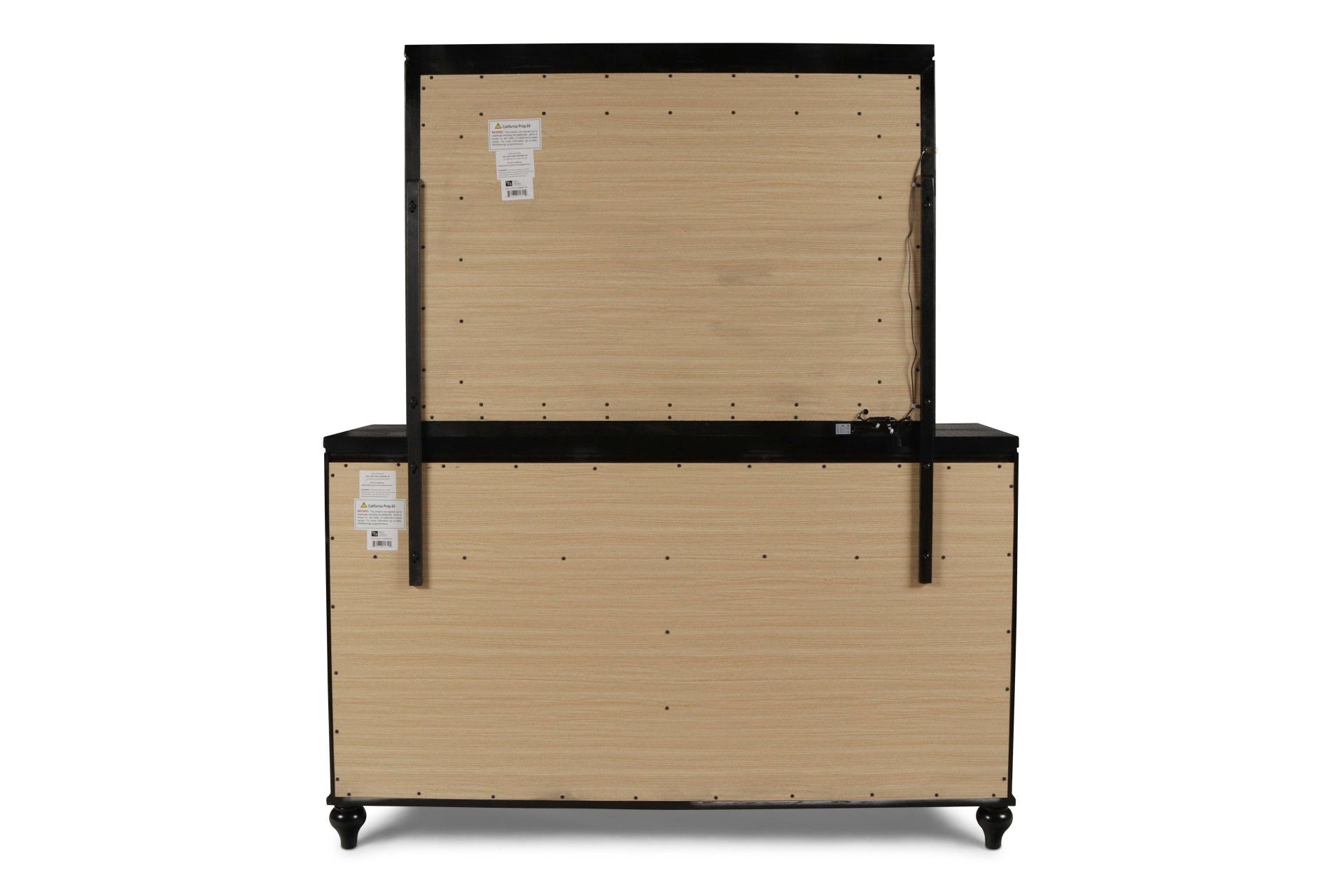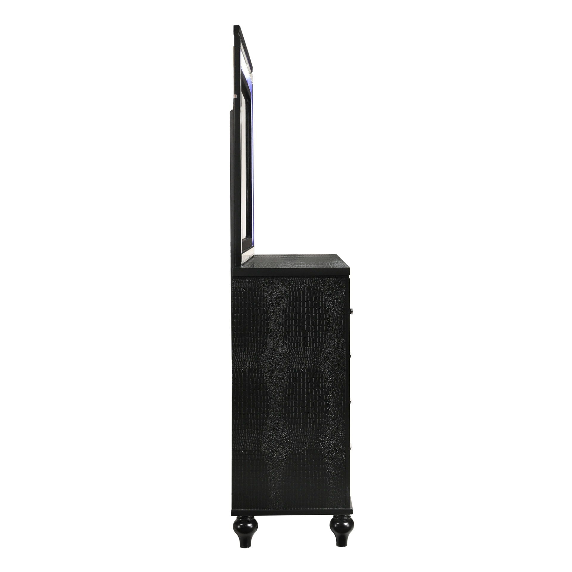 Introducing the Valentino Lighted Dresser Mirror—a testament to enduring craftsmanship crafted from a blend of manufactured and solid woods, accentuated by intricate embossed inlays. Revel in its glitz and glam, featuring a gleaming finish and mirrored trims that exude Hollywood allure. Elevate your space with its mood-enhancing soft LED lighting, casting a warm ambience for intimate moments. Experience the perfect fusion of durability, elegance, and functionality with this distinctive piece that promises to transform your dressing area into a sophisticated sanctuary.