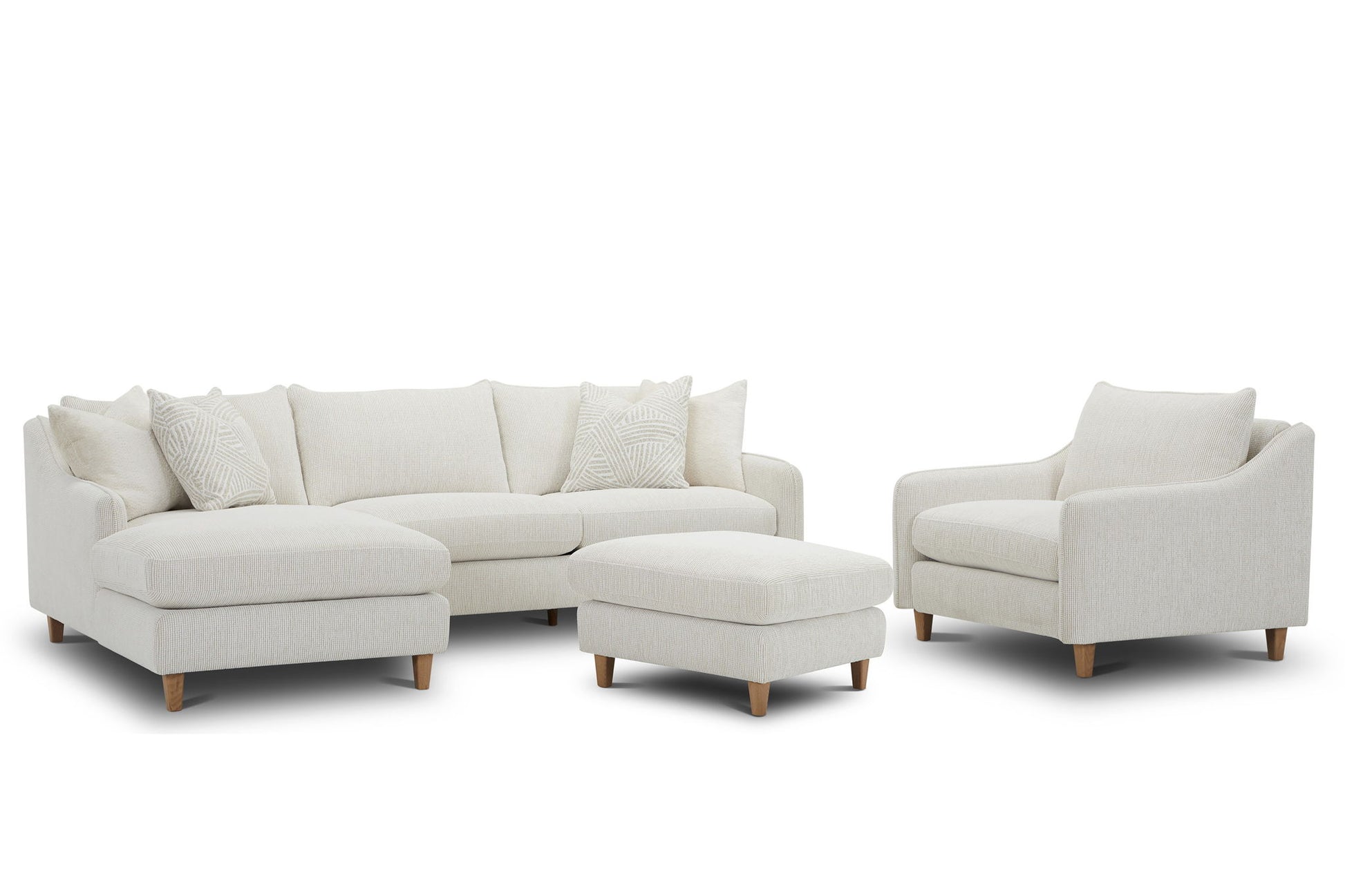 - Wood feet in a natural finish add a distinctive touch and lend a modern vibe