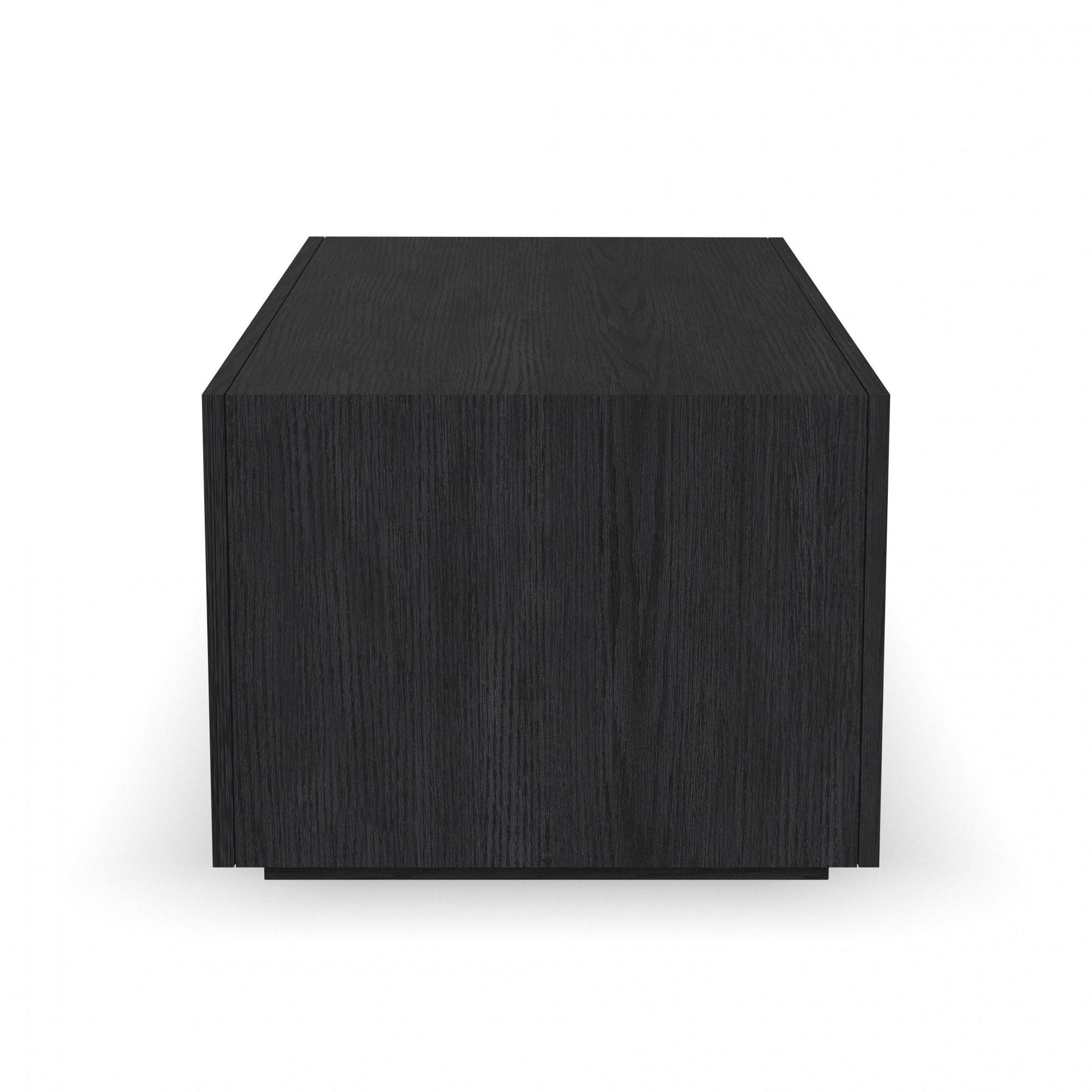 Add effortless style and architectural appeal to your living room with the Waterfall rectangular coffee table with casters. Featuring a timeless silhouette defined by clean lines and simple geometric shapes, this table is distinguished by its striking waterfall edge and open shelf design. Use alone or pair it with the coordinating accent table for a tiered look and additional surface area. Convenient casters allow for easy movement and optimal placement as you entertain guests. This Waterfall coffee table is well-crafted from solid rubberwood with oak veneers and features a deep ebony finish for lasting beauty.