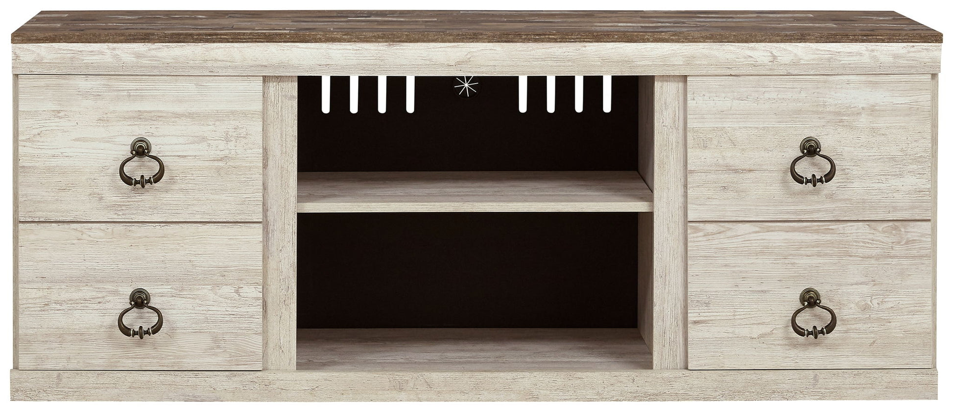 Willowton - 64" TV Stand W/Fireplace Option - Whitewash